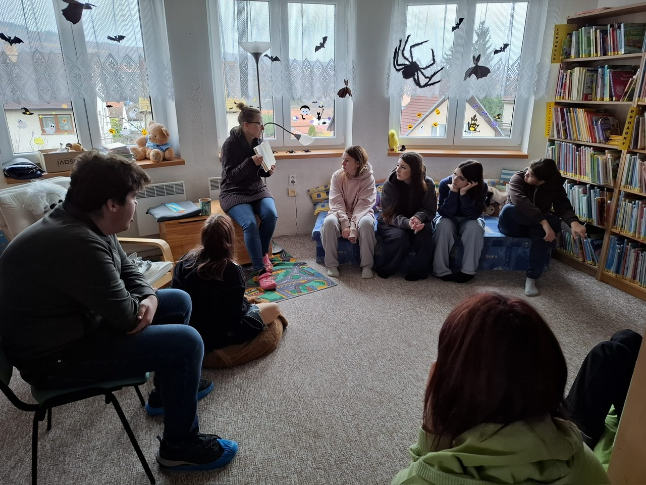 Další místo, které naši nejstarší žáci v rámci exkurzí na pracoviště navštívili, byla knihovna. Paní knihovnice jim vysvětlila, jak se knihy třídí, půjčují a vracejí, a ukázala i to, jak se o knihy pečuje, aby dlouho vydržely. Žáci se také dozvěděli, jak knihovnice pomáhá čtenářům s výběrem vhodných titulů, jak se vytváří čtenářské průkazy a kde hledat nové či oblíbené knihy.